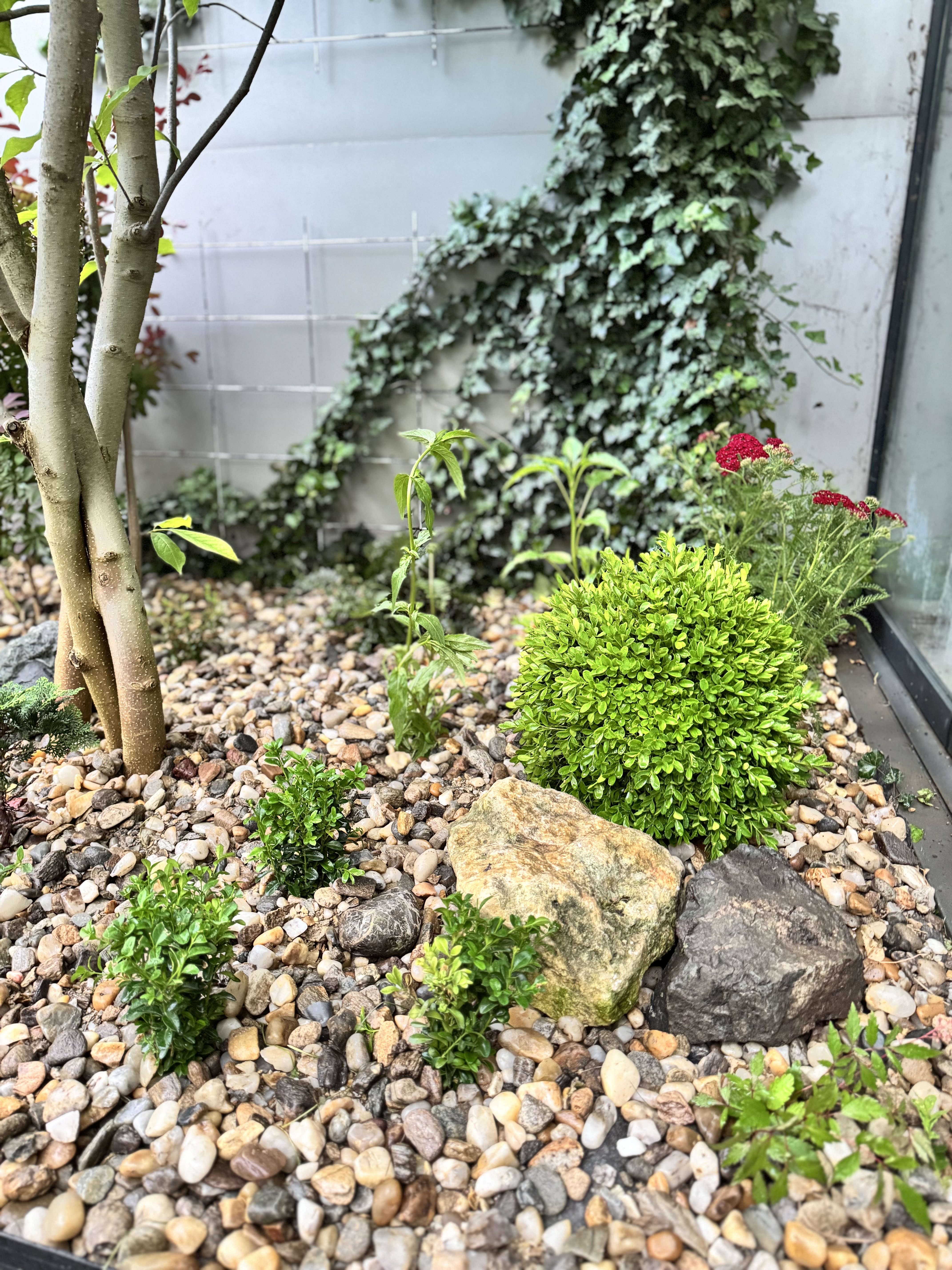 Teren de peste 1.000 mp cu sol nisipos și drenaj deficitar. Familia dorea o grădină ușor de întreținut, care să arate bine în toate anotimpurile.